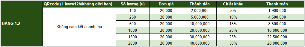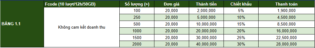 Khi trở thành Đại lý Fcode & QR Code, bạn sẽ được hưởng mức chiết khấu hấp dẫn như sau: