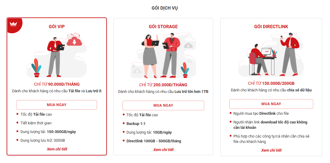 Dành cho người dùng cần tải tốc độ cao và lưu trữ dưới 300GB. Gói VIP có dung lượng tải nhanh lên đến 300GB/ngày và có thể mua thêm dung lượng tải trong ngày khi người dùng phát sinh nhu cầu tải cao trong ngày.