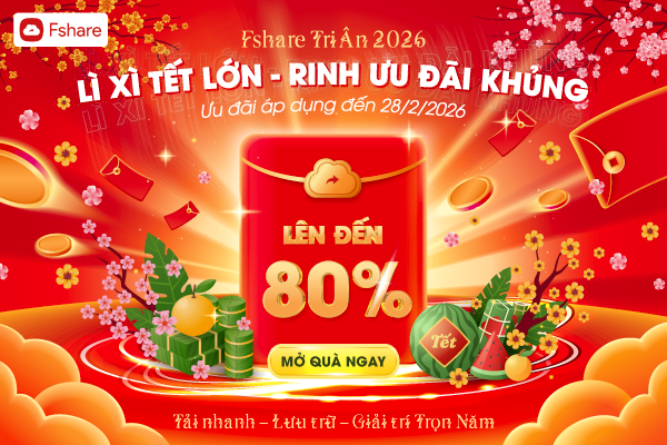 Nhân dịp năm mới và tết Nguyên Đán 2026, từ ngày 01/02/2026 đến hết ngày 28/02/2026, Fshare triển khai chương trình TRI ÂN KHÁCH HÀNG, thay cho lời cảm ơn chân thành gửi đến Quý khách hàng và Quý đối tác đã tin tưởng, đồng hành cùng dịch vụ trong suốt thời gian qua.